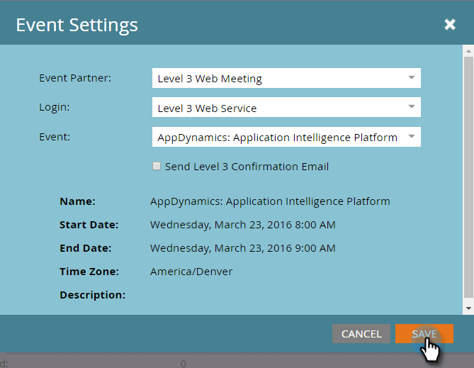 請先在Level 3中建立您的網路研討會。 如果您需要協助,請檢視Level 3 資源庫。 您會發現它與BrightTalk非常類似。 Marketo使用Level 3欄位的一個小子集: