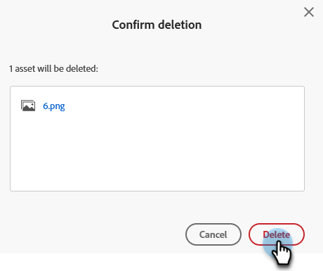 刪除後,影像/檔案會從Marketo Engage中完全移除,且無法復原。