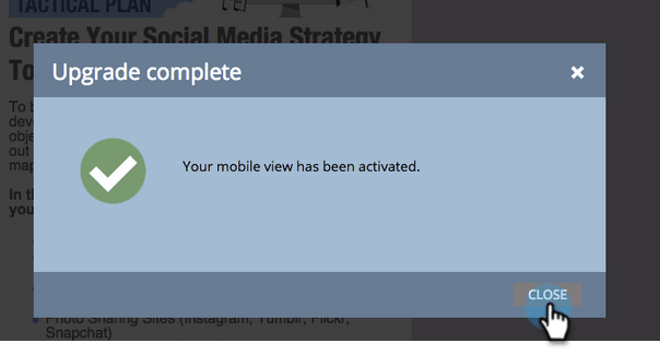 太棒了! 您現在已啟動登陸頁面的行動版本。 按一下「Close」。