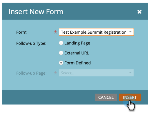 在此範例中,我們將使用Form Defined。 按一下「Insert」。