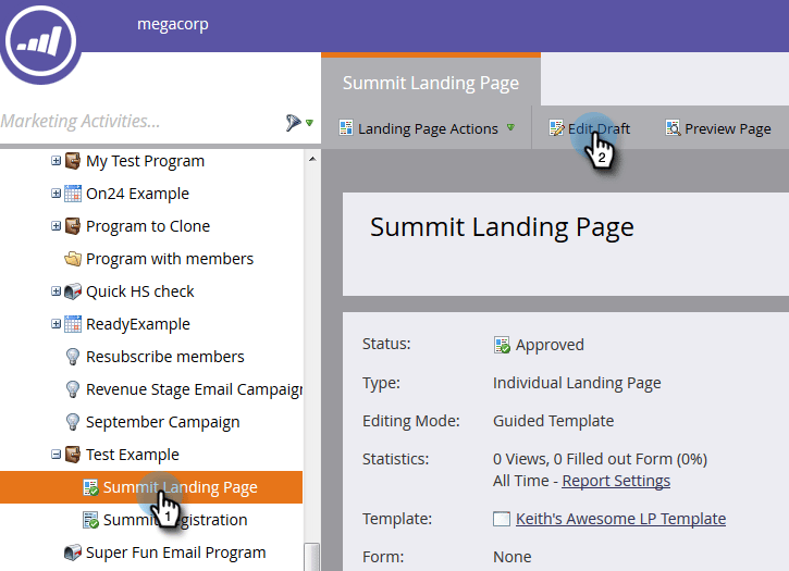 - Landing Page — 選取Marketo登陸頁面