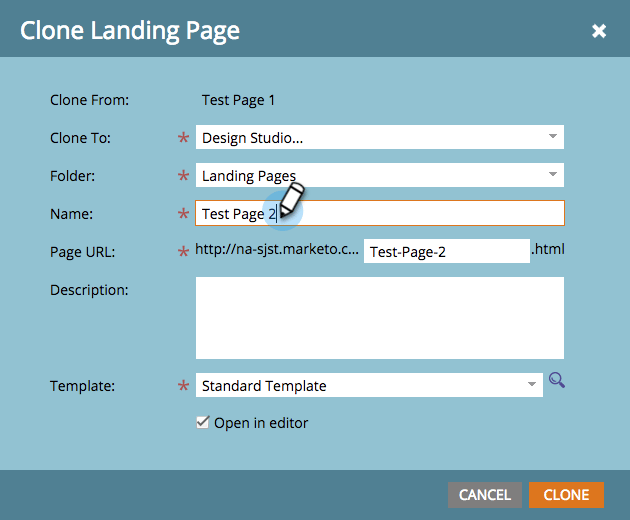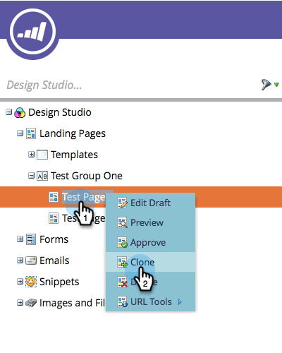 以滑鼠右鍵按一下未核准的頁面。 選取「Clone」。