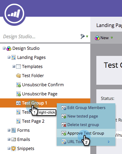 當您準備啟動測試群組時,請在樹狀結構中以滑鼠右鍵按一下該群組,然後選取 Approve Test Group。