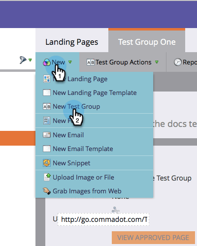 現在按一下 New 並選取 New Test Group 以建立新的測試群組。