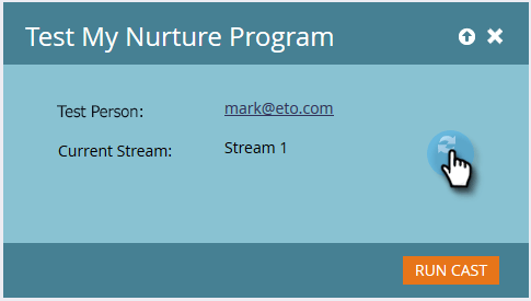 note caution CAUTION 確定您的測試人員是唯一的,且資料庫中沒有重複專案。 note tip TIP 如果您要尋找的測試人員不存在,請使用 Create Person 選項立即建立測試人員。 按一下 Initial Stream,選取您要測試的資料流,然後按一下 Run Cast。