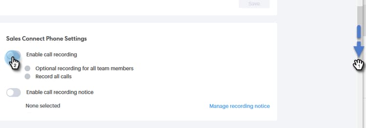 身為管理員,您可以啟用Sales Connect通話的通話錄製。 記錄團隊的電話是指導銷售代表最佳電話慣例的好方法。