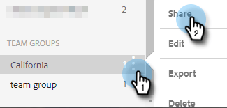 按一下下拉式清單,選擇您要共用群組的團隊,然後按一下 Share。
