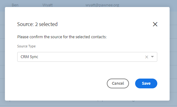 為您選取的聯絡人選取正確的Source型別後,畫面會顯示確認視窗,以確認更新成功。