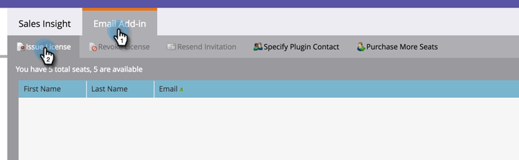輸入需要授權才能使用外掛程式的銷售代表電子郵件地址,然後按一下 Issue License。