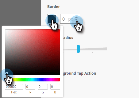 套用選用的影像邊框。 預設設定為 Off。 首先,按一下顏色或在檢色器上輸入十六進位或RGB數字來選取顏色。