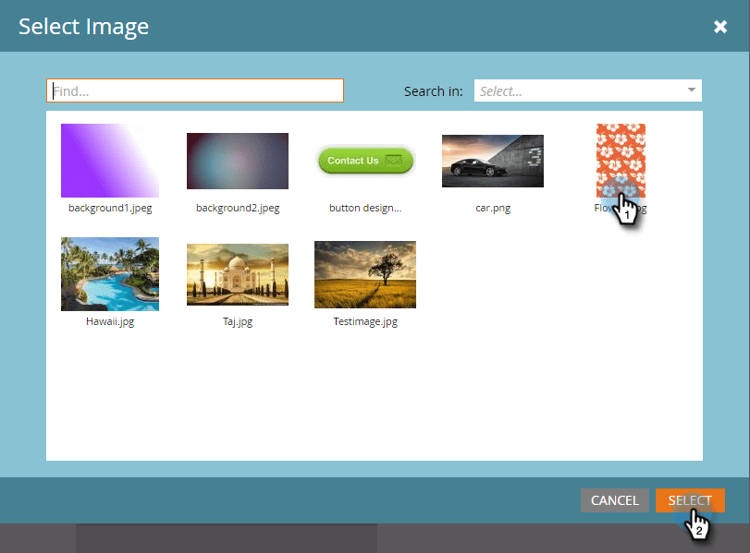 從上傳至Design Studio的檔案中進行選擇。 按一下「Select」。