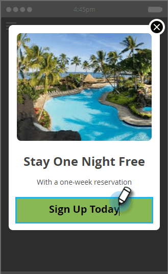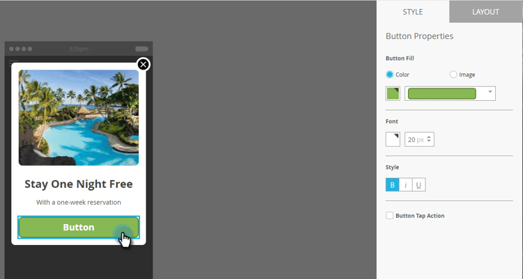 即將完成。 您的最後一步是設定應用程式內訊息背景並關閉按鈕。