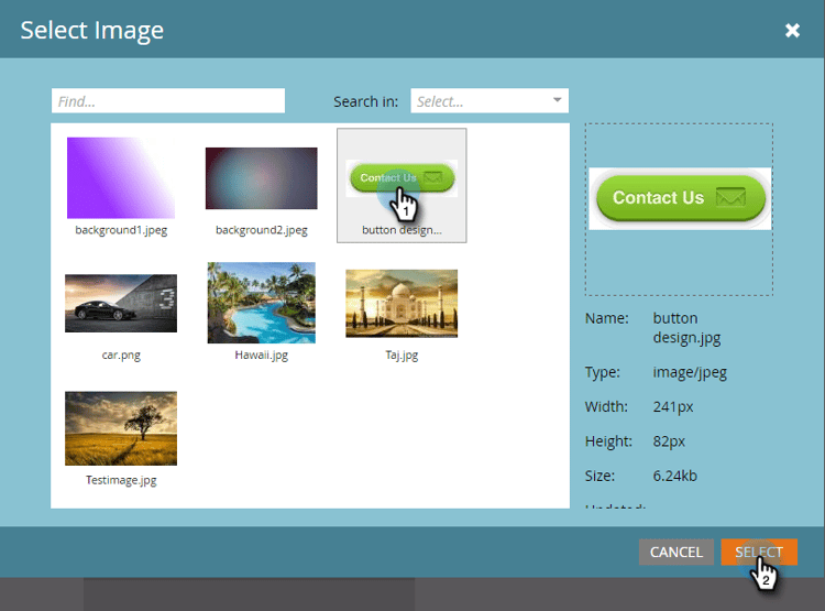如果您想要將自己的影像用於按鈕,請按一下 Image 按鈕,然後按一下 Select Image。