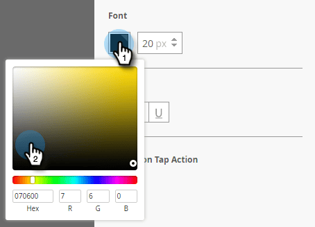 按一下顏色選取方塊,然後按一下字型顏色,或在檢色器上輸入十六進位或RGB數字來選取字型顏色。