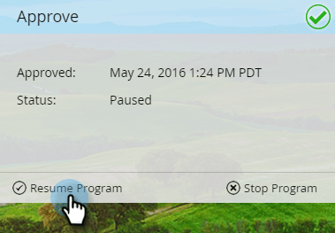 如果您需要停止程式一段時間,但稍後再繼續,請按一下 Pause Program。 它將變更為 Paused 狀態。