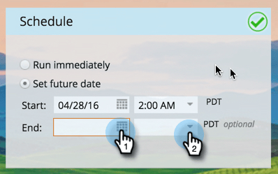 「結束日期」和「結束時間」為選用;請從下拉式清單中選取。