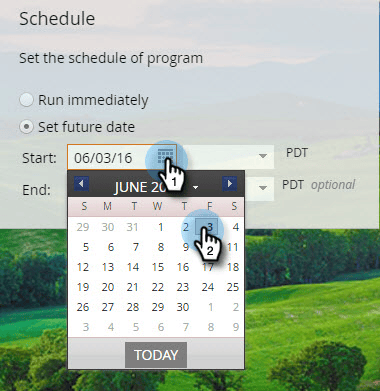 或者,若要立即執行程式,請選取 Run Immediately。 開始日期欄位消失。