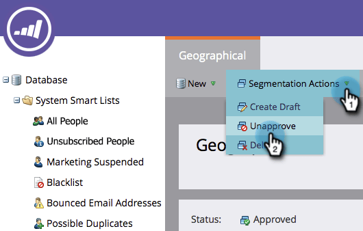 移除所有關聯,然後在 Segmentation Actions 中按一下 Unapprove。