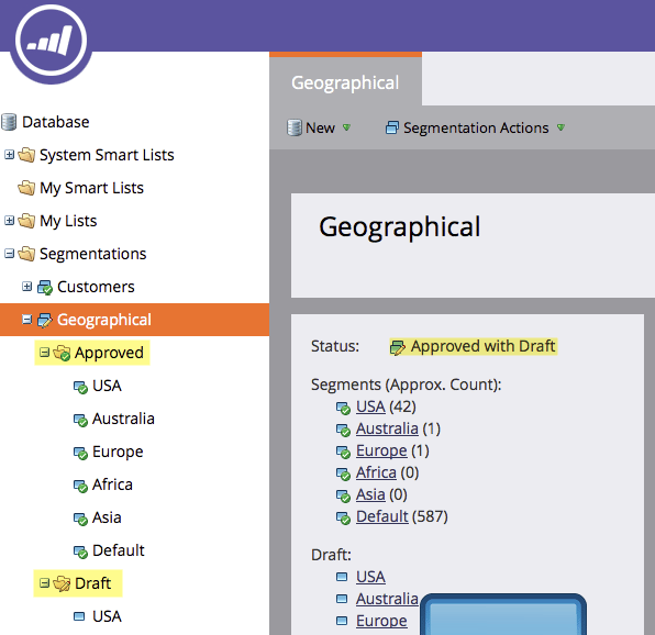 Status 變更為Approved with Draft。 已在您的細分中建立 Draft 資料夾。