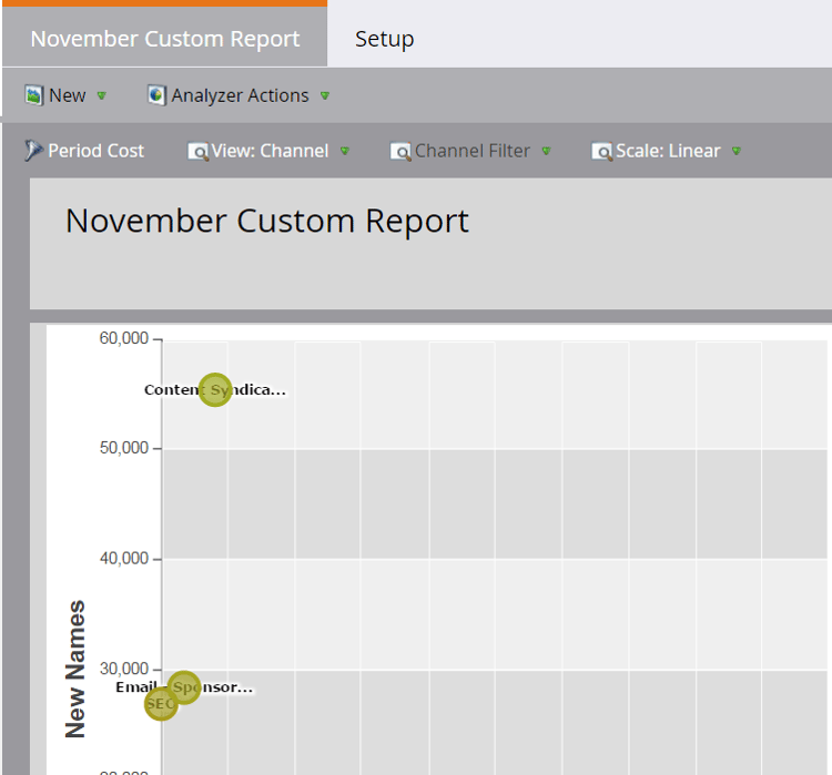 探索哪些計畫和管道為您帶來最大的行銷成本。 使用方案分析器,依方案或管道詳細檢查及比較每項成本與回報。