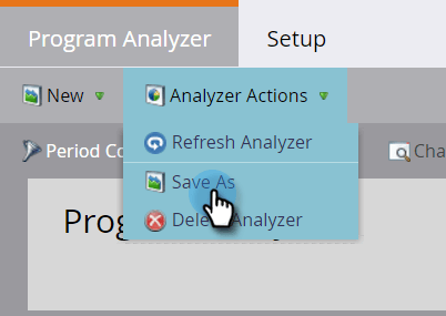 若要儲存新的自訂分析器,請在 Analyzer Actions 下拉式清單中選取 Save As。