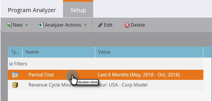 例如,若要自訂Period Cost篩選器,請連按兩下。