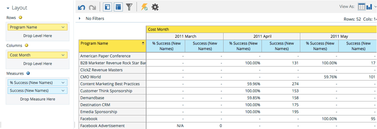「方案成本分析」區域可讓您分析個別方案的成效,或檢視特定期間依管道的摘要結果。