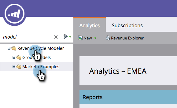 選取 Revenue Cycle Modeler 資料夾,然後按一下 Marketo Examples。