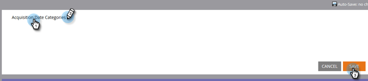 按一下日期編輯器上方的預設自訂群組名稱以自訂名稱。 例如,您可以將「贏取日期群組」重新命名為「贏取日期類別」。 按一下「Save」。