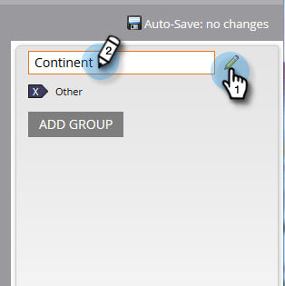 按一下鉛筆圖示可自訂名稱。 例如,您可以將「國家群組」重新命名為「大陸」。 輸入所需的新名稱,然後按一下離開方塊以自動儲存。