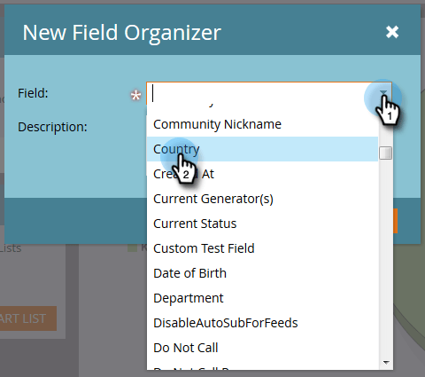 按一下 Field 並選取資料型別對應到字串編輯器的標準或自訂欄位(請參閱上一節中的表格)。 此處使用Country。