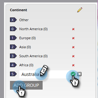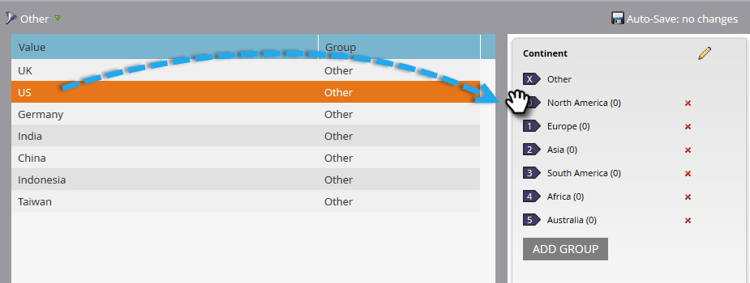 依預設,所有資料值都會放在"Other"子群組中。 若要分類資料值,請按一下 Add Group 建立子群組並為其命名。