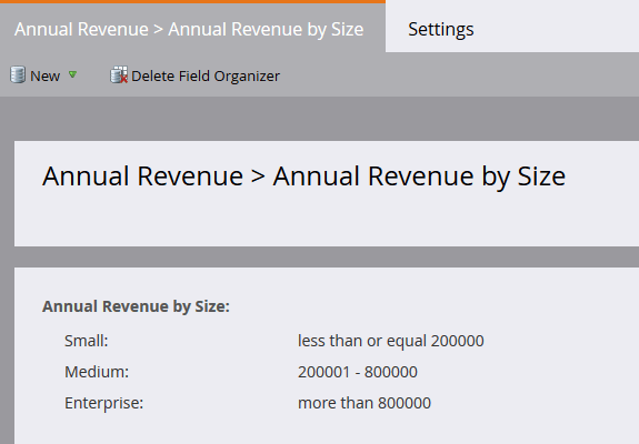 按一下New,然後選取New Field Organizer。