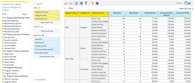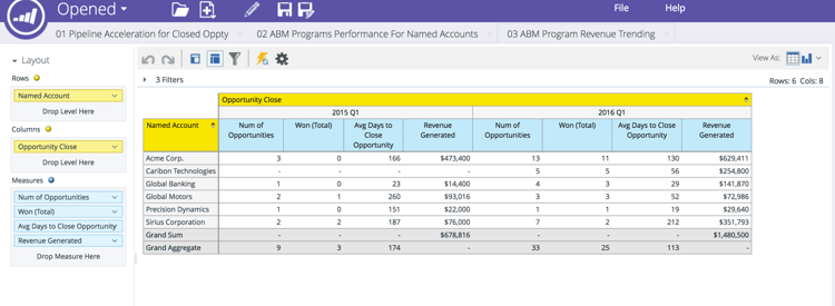 RCA中的具名帳戶維度可用來測量目標帳戶帶來的淨利影響(例如,贏取的收入、產生的管道或銷售週期的加速)。 此維度也可用來識別哪些程式在具名帳戶上執行與未執行良好。