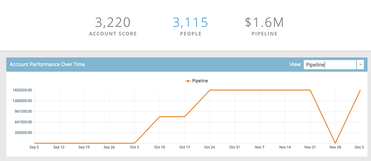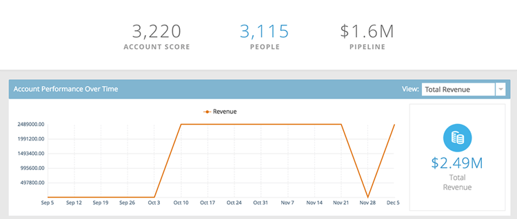 Account Engagement Over Time 按一下右側的 View 下拉式清單,以變更您檢視的內容。 除了Account Score之外,您還可由Total Revenue檢視……
