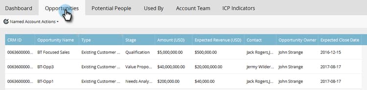 帳戶層次上所有未結商機的彙總檢視,可協助行銷團隊專注關閉特定商機。
