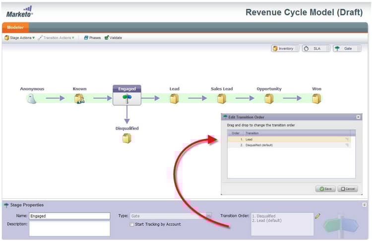 收入週期Modeler中的 增強閘道階段