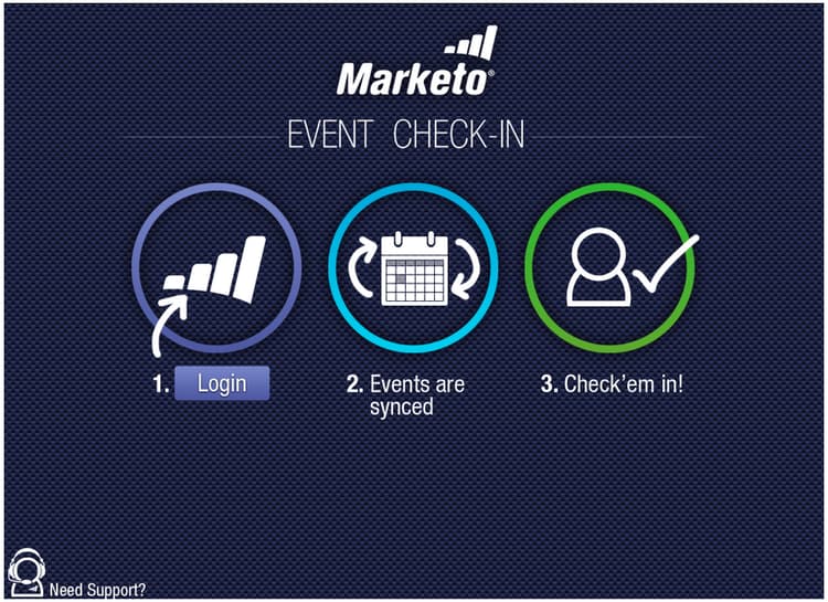 使用我們新的iPad應用程式,簡化您的事件簽到程式! 事件簽入應用程式會與您的Marketo程式同步,並讓您輕鬆將註冊者簽入事件,以及即時新增潛在客戶。