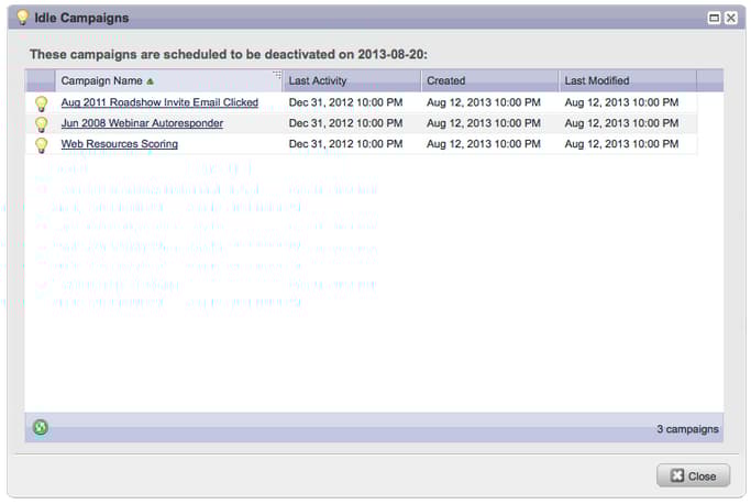 Marketo現在會定期通知您,並自動停用過去六個月未執行的觸發促銷活動。
