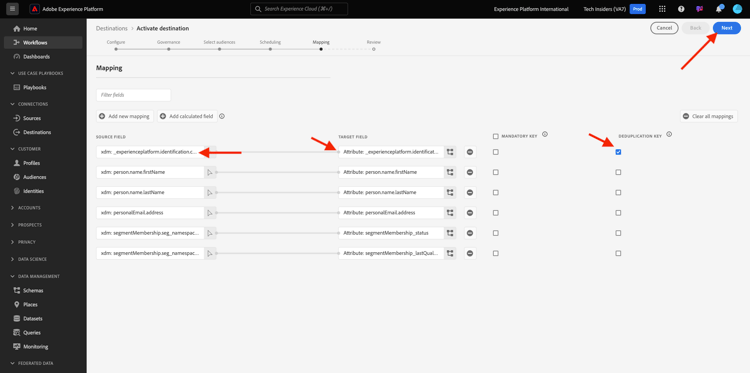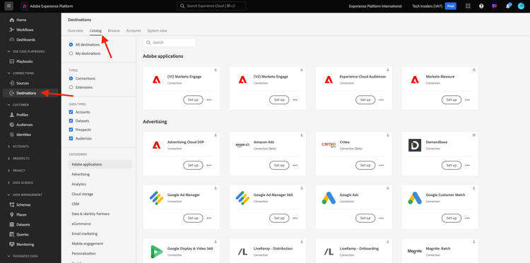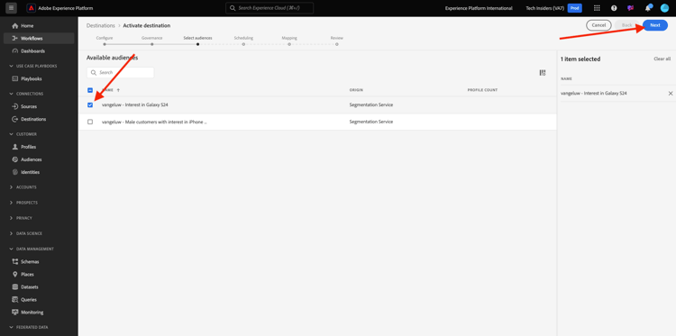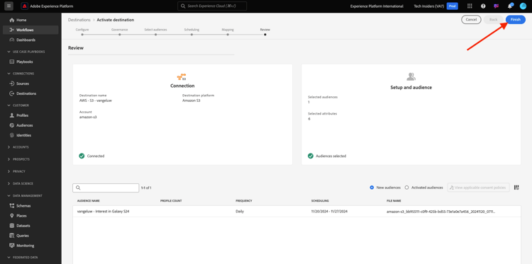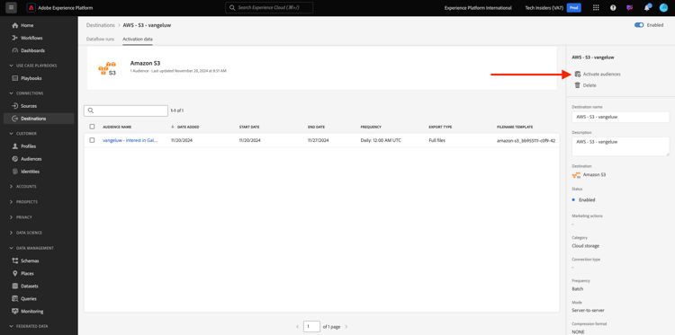 接著,您會回到「Destination Activation」畫面,然後看到您的對象已新增至此目的地。