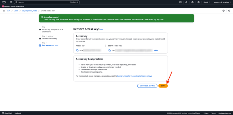 您現在已成功建立AWS S3貯體,並已建立具有存取此貯體許可權的使用者。