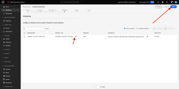 您將會看到此訊息。 如有需要,您可以按一下 鉛筆 圖示來編輯排程和檔案名稱。 按一下 下一步。