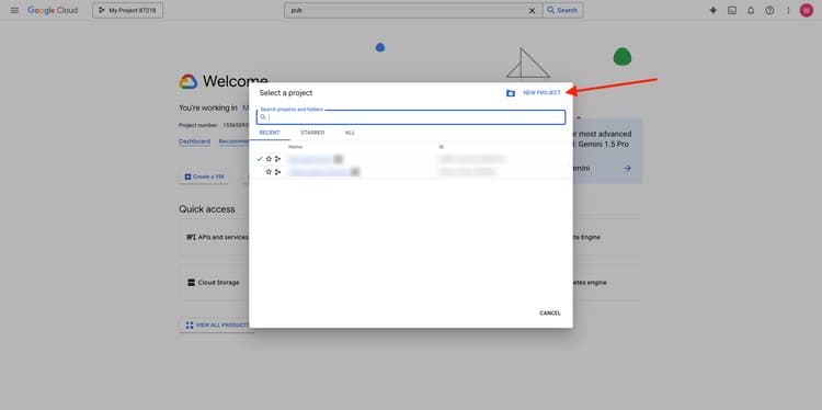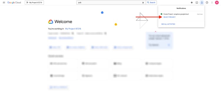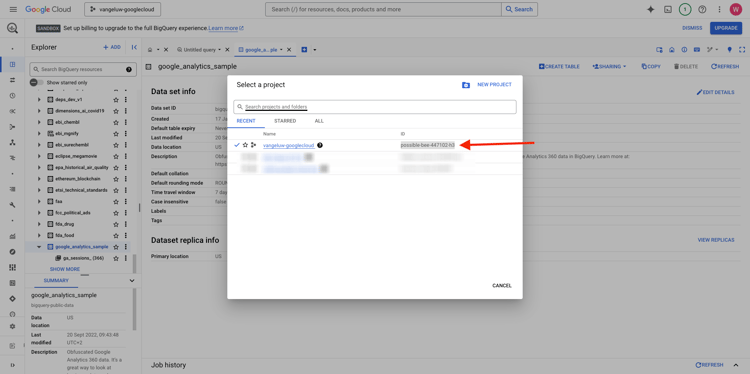 按一下頂端功能表列中的您的 專案名稱,即可找到您的專案名稱和專案識別碼:
