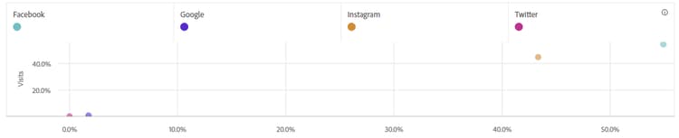 在我看來,Analysis Workspace 中的散佈圖視覺效果是最被低估的功能之一。它是一個 強大的工具,可根據相關 KPI 評估某些維度元素的成效。